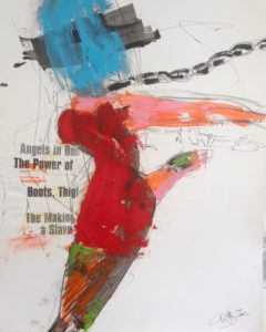 Ja, auch Humor ist eine der Waffen der dargestellten zum Teil wehrhaften Frauen von Wolfgang Glass, die mit wenigen Ausnahmen, meist in Abwesenheit jeglicher Männer ihre Stärken und auch Schwächen selbstbewusst ausleben. Seine Frauen sind starke für sich stehende Kämpferinnen, die sich dafür nicht schämen und ein Gegenentwurf zu einer Gesellschaft seien, die die Frau gleich und unauffällig, ja anonym mache. Als Künstler fühle er sich mit der Schönheit, Sinnlichkeit und Stärke von Frauen verbunden, wobei er diese Stärke gerne auch überzogen, futuristisch und aufreizend zeigt. Weil sich nicht selten erst in dem überzogen Überspitzten die Niederungen zeigen, die er selbst ablehnt. Ein wunderbares Beispiel dieses Gedankens ist das Bild Fall for you. Eine anonymisierte weibliche Figur in aufreizender Kleidung räkelt sich einem noch anonymer bleibenden nur textlich erwähnten „you“ entgegen, dem sie verfallen sei. Also ob dies als Zeichen der Hingabe nicht reichen würde, tut sie dies gleich in dreifacher Weise. Das endgültige „Verfallen-Sein“ zeigt sich schließlich in einem Bild und Text vergrößerten, physisch kaum möglichen, überbeugenden Körper, während auch da das Gesicht schließlich unkenntlich und damit immer noch anonym bleibt. Die Frage bleibt: Wer verfällt wem? Und hat es einen Sinn, sich selbst aufgereizt dafür so zu verrenken? Und doch zeigt die weibliche Figut selbst verrenkt ihr Stärke erhobenen Hauptes und Armes.